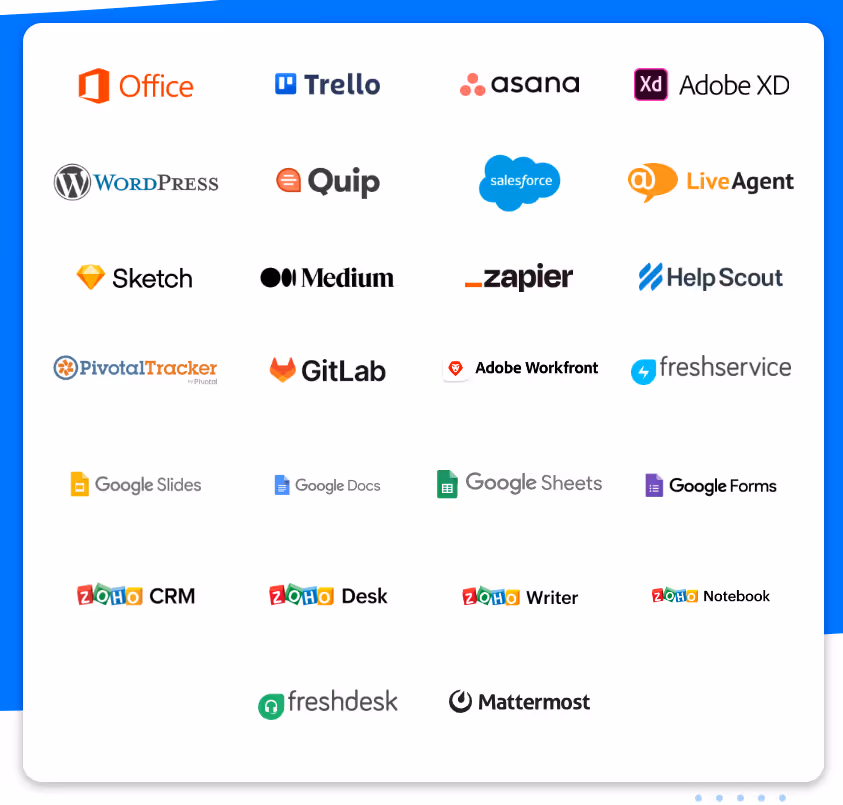 Zight also integrates with all essential workplace tools, like MS Teams, Slack, Jira, Confluence, and more. Plus, you can also integrate the tool with these 20+ tools.