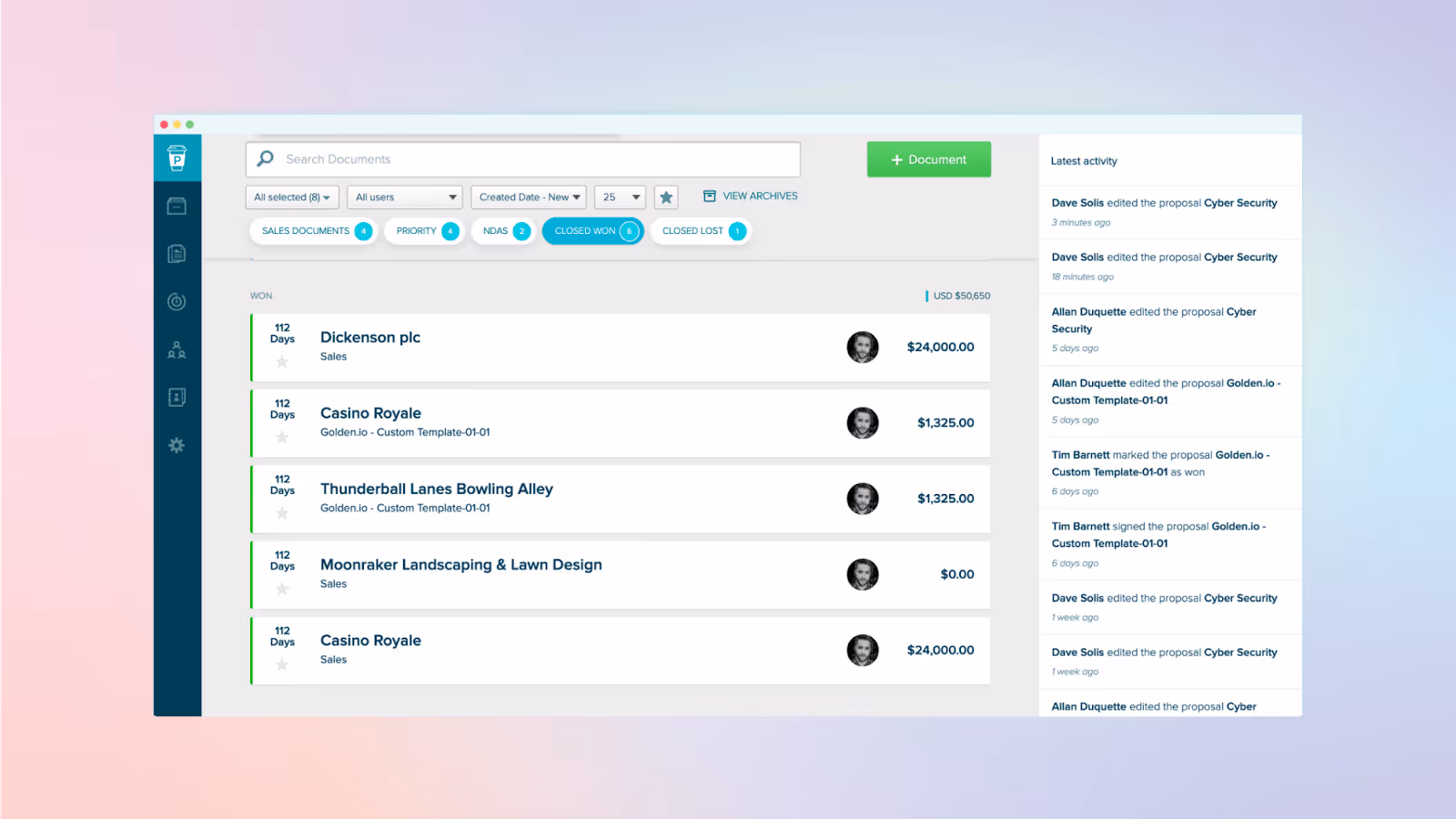 You also get a collaborative environment to create proposals at scale. What’s more, Proposify provides valuable insights into client interactions for each document, tracking viewing and engagement metrics.