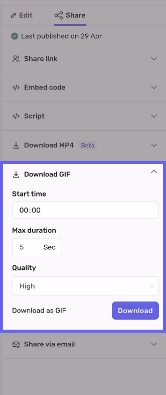 Want to share your demo via email with a visual hook? You can now download a GIF preview of your video or interactive demo to include in emails.