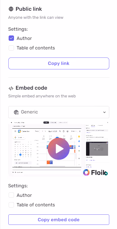 You can customize the embed code to change the end-user view of your embedded Flos. You can choose to show or not show the Flo author. It's also possible to show or not show the table of contents for your step-by-step guides specifically.