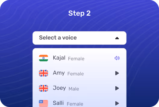 Add a sample script and try 20+ voices before finalizing the best one for your showcase. You'll find male & female voices for multiple languages.