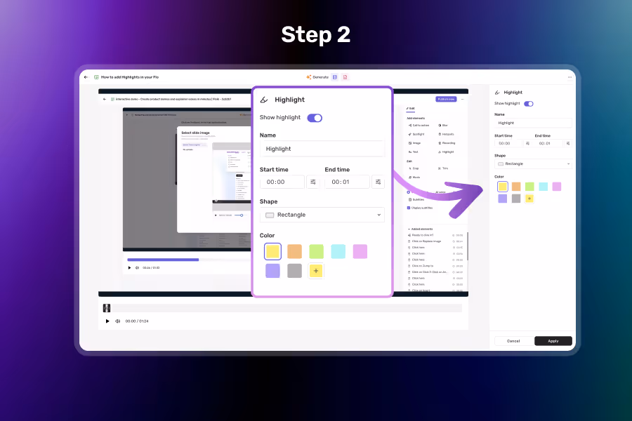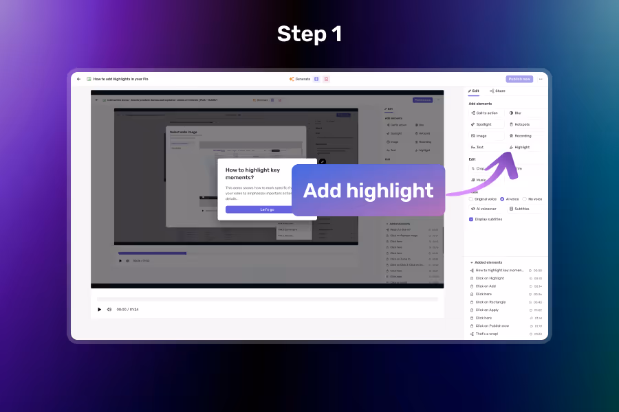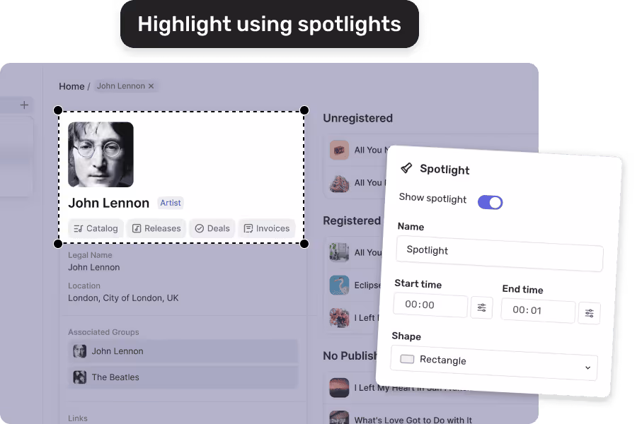 Highlights can be layered with spotlights, text, and images for richer, more guided walkthroughs.