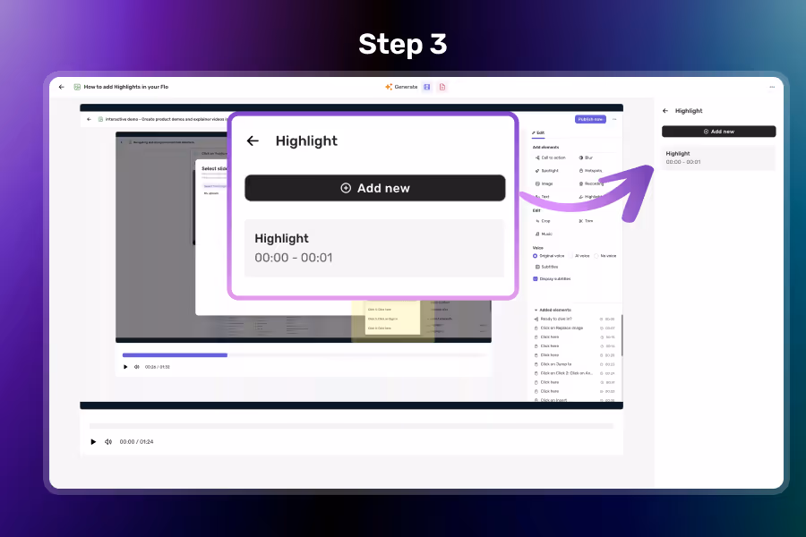 Control when the highlight shows up in your Flo to sync perfectly with your narration or steps.
