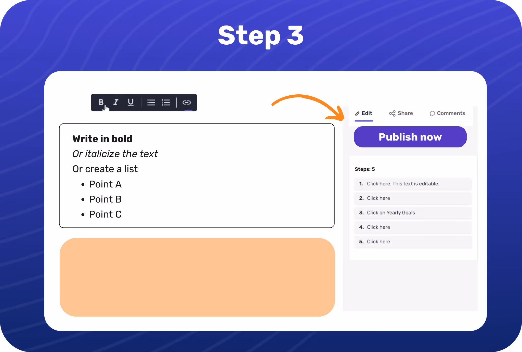 Yes, the rich-text editor lets you create numbered and bulleted lists to present information sequentially.