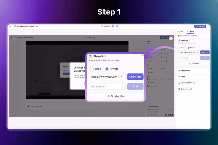 Make your Flo accessible to anyone with the link—perfect for marketing pages, help docs, or social sharing.