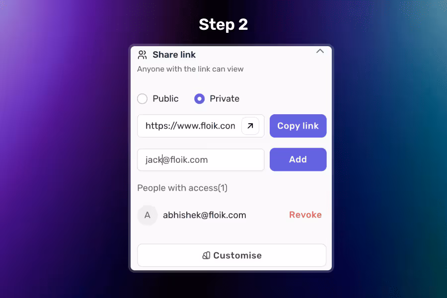 Restrict access by adding specific email addresses. Only invited users can view the Flo.